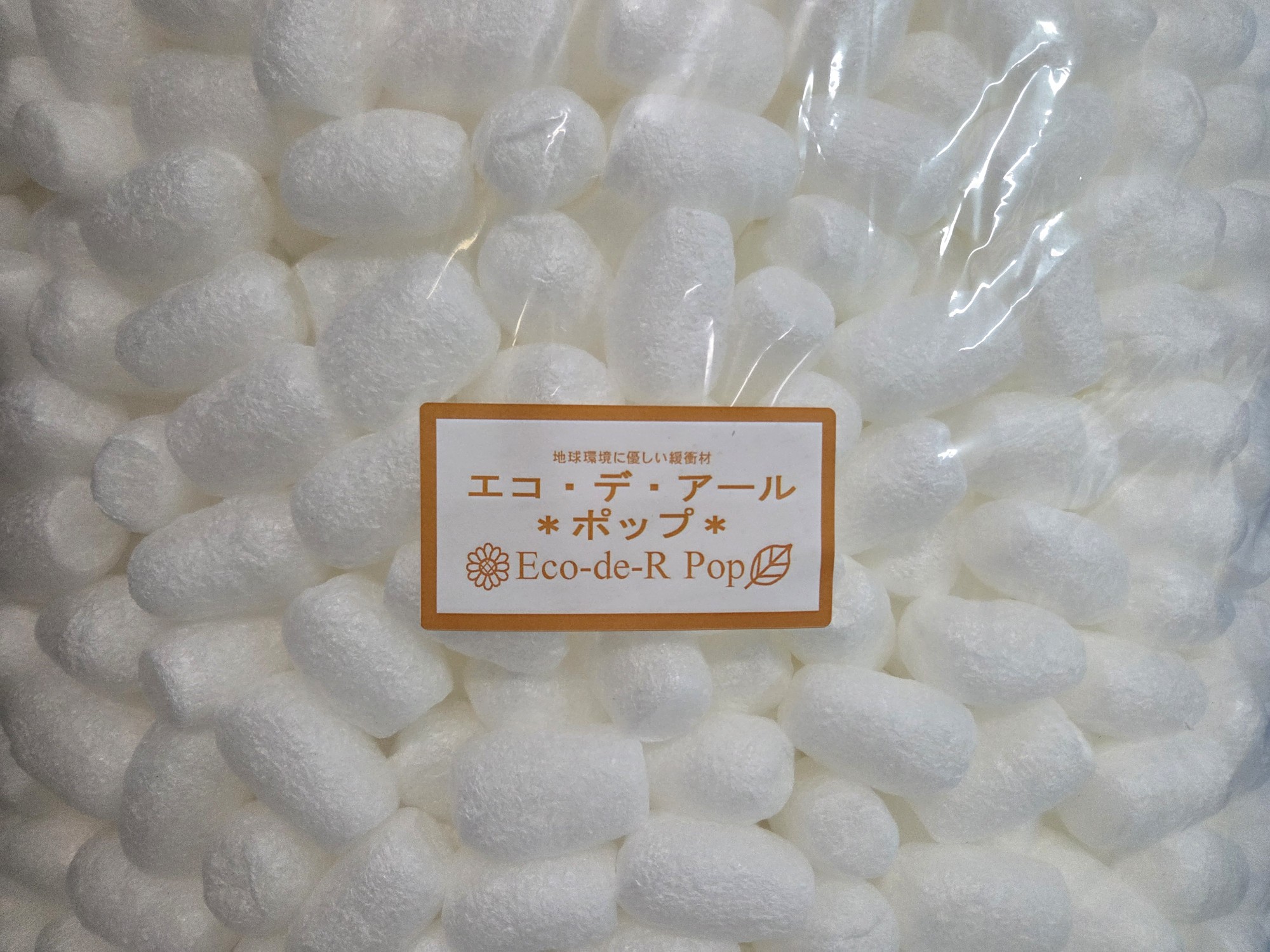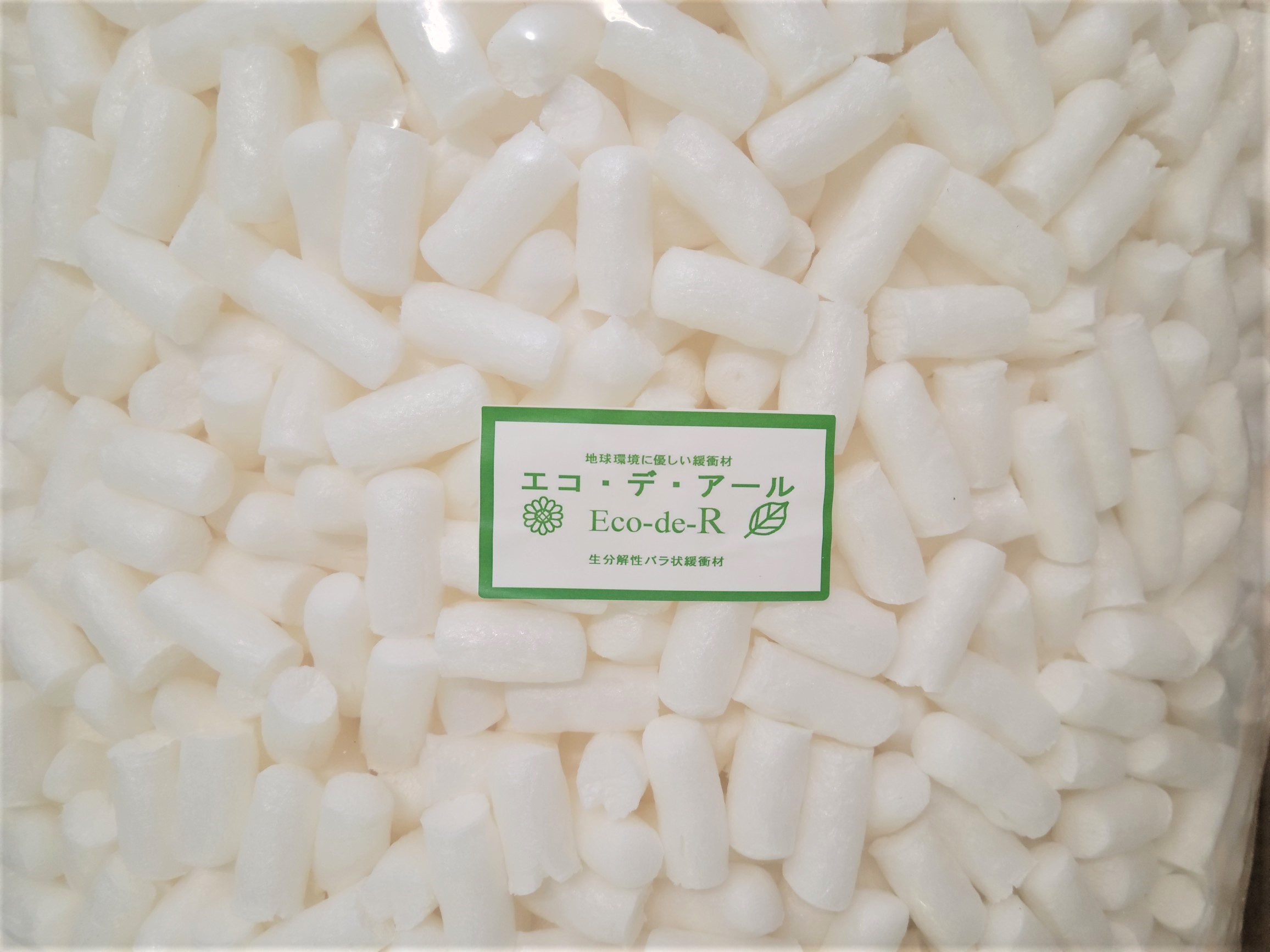主原料はコーンスターチとPVA(生分解性樹脂ポリビニルアルコール)で土に埋めるとバクテリアにより分解される完全生分解性緩衝材です。